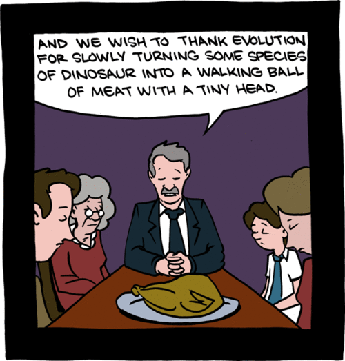Oh yeah, the turkey died for us so I guess we should thank him. Um… thanks.