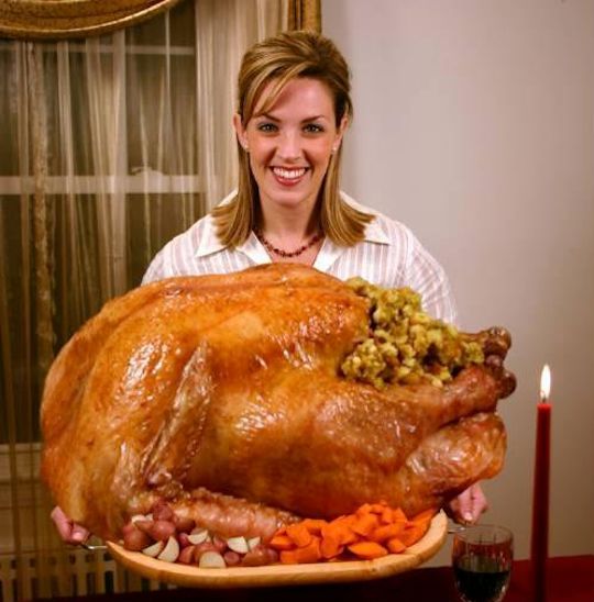 2. When the bird is done, it’s time to eat, not time to start making the damn yams! The meat is not going to sit there getting juicier. Have the table ready and while you are putting Mr. Turkey on the platter and adding a LOT of of garnish, insist folks get to the table. If someone is late arriving, too bad. They are the ones being disrespectful. The turkey died for this. The turkey’s dead steamy carcass is the honored guest. Respect the turkey’s dead tasty body.