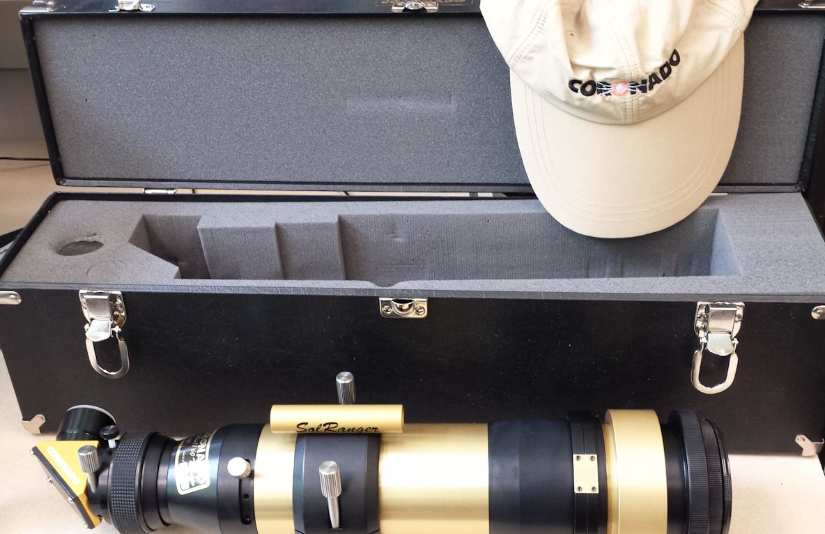 If you get a Coronado, don’t forget to buy the hat. Not only so you can look the part of geek-of-the-week, but because ultraviolet light is nasty stuff. As fun as stars are, they are dangerous up close. They say the hat is UV resistant but I’m not sure what they mean by that. I assume that most any hat will stop UV. Maybe they mean that the fabric’s color will resist fading. I don’t know. At least the hat has a tail that will save your neck. Which is nice.