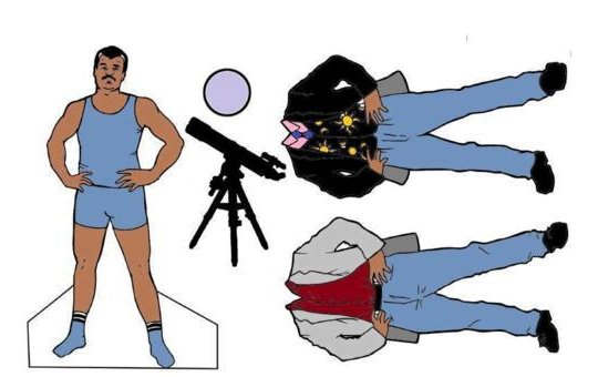Expensive equatorial mounts and clock drives are not at all necessary for dedicated observing. Many amateur astronomers use simple altitude-azimuth type mounts. These mounts allow you to move the scope up and down and around in a circle. And let’s face it, isn’t that what it’s really all about? You just do the hokey-pokey and you spin your shit around. So for your first scope, consider the stable and elegantly simple Dobsonian mount, made popular by John Dobson, who was popular. As John once told me,