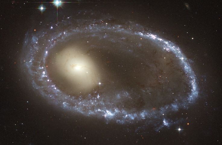 The Lindsay-Shapley Ring (AM0644-741) is the sort of thing you get when a small galaxy comes flying in and its gravity smacks a bigger galaxy like a rock dropped in a pond. A shock wave of star birth ripples outward making a ring.