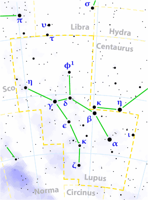 The constellation Lupus is way down south. It was even recognized as the wolf by Claudius Ptolemy a couple of thousand years ago, which is notable because Ptolemy was mostly concerned with the stuff more to the north. On the other hand the stars in this area are near Centaurus and they do in fact easily connect to look like some sort of critter, if you’re clever. So it’s only natural to add it to a map, that way the Centaur has something fun to shoot at with his arrows.