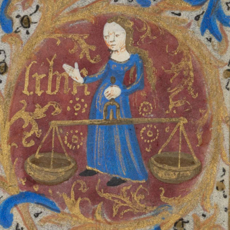 The backstory on Libra starts at a time when the Romans were mucking about with the calendar. Those guys were always stealing days from February and other shenanigans. Then they started trying to divide the sky up into perfect 30 degree sections. Well that didn’t work. The star groups are all different sizes and shapes. The Sun is in Virgo for 45 days. It was in the scorpion for a neat and tidy 30 days. But the Romans didn’t like how Scorpius had such huge gangly claws because you see at that time, there was no Libra. The stars of Libra were the scorpion’s original claws. So the Romans cut off his claws. Then they gave him some little tiny claws, and used the left over space to add the scales. The Romans actually stole the idea of the scales from some old Babylonian drawings.