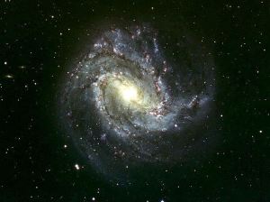 M83 is a nice face-on barred spiral galaxy in Hydra, also known as the Southern Pinwheel. It’s only about 15 million light years away, which is practically next door in galactic terms. You can even see it with binoculars. Which of course means that critters living there can see our galaxy in binoculars as well.