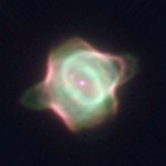 You can find the Stingray Nebula in Ara. It’s an interesting planetary nebula. These objects are basically the thrown off and expanding shell of gas from an aging dying star. This one is the youngest planetary we’ve found so far. It’s really just getting started doing the planetary thing. The cloud is still pretty close to the star that shed it. The colors indicate that there is a lot of oxygen, carbon, and nitrogen in the cloud.