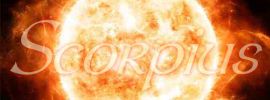 Lots of bright stars in a long swooping curved shape like a fish hook. The brightest star is a huge red one smack dab in the heart of the beast.